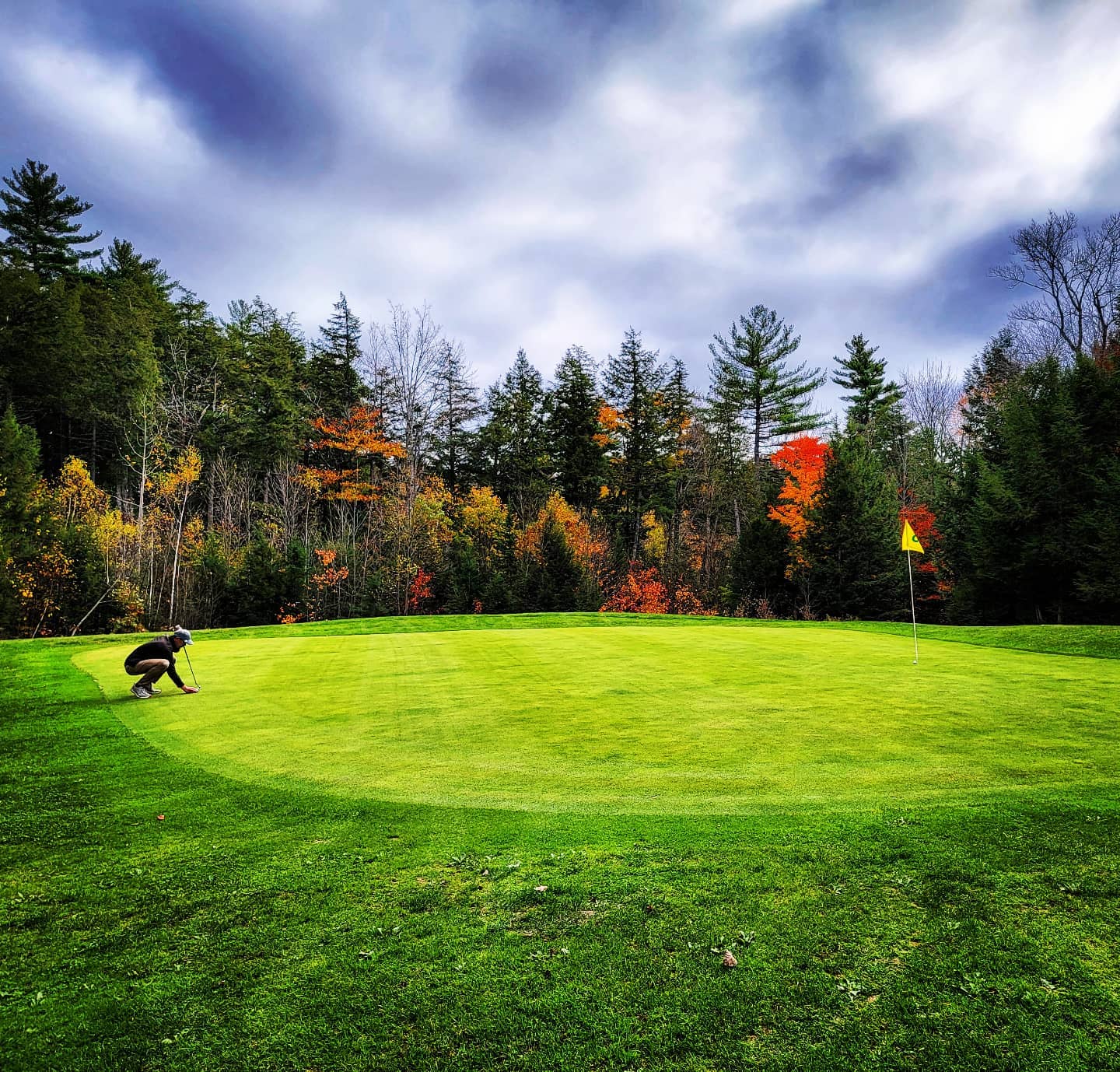 "Timber Tumble," the 8th hole at Sawmill Woods, stands as a testament to exceptional design as one of Eastern Maine's finest par 4s. This 380-yard, tree-enshrouded challenge invites a strategic dance: a cautious mid-iron off the tee targets the right side of the fairway, setting up a daring, sharply downhill assault towards an elongated, slender green with a mid-iron or hybrid. Opting for aggression with a 3-wood or driver tempts fate, aiming for a wedge approach through a labyrinth of slopes, each steering your journey down the fairway's descent. Errant approaches are generously forgiven, except for those who overshoot into regret beyond the green. Securing a par on "Timber Tumble" is an achievement worthy of collective acclaim, a moment of triumph amidst the towering pines.
